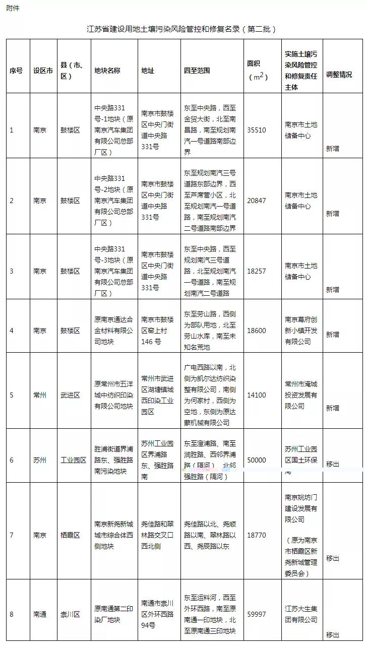 附件:《江蘇省建設用地土壤污染風險管控和修復名錄(第二批)》
